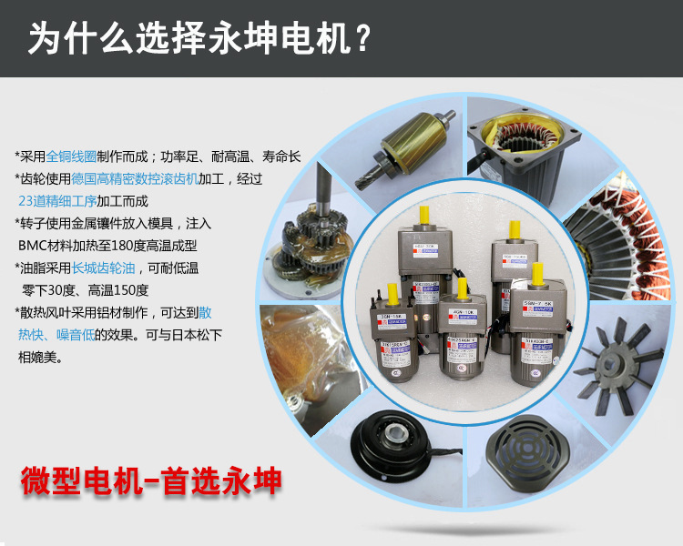 永坤電機是一家臺灣老品牌的齒輪減速電機產品生產企業,現生產與銷售各款各樣的齒輪減速電機產品,蝸輪蝸桿減速機產品,無刷電機,直流、交流伺服電機,配套相關驅動器,變頻器,調速器,控制器,歡迎新老客戶朋友們來電咨詢,更多詳情可與業務深入溝通、交流。電話15118744788蘇工,15118744777潘工,企業網站m.cpicwh.cn