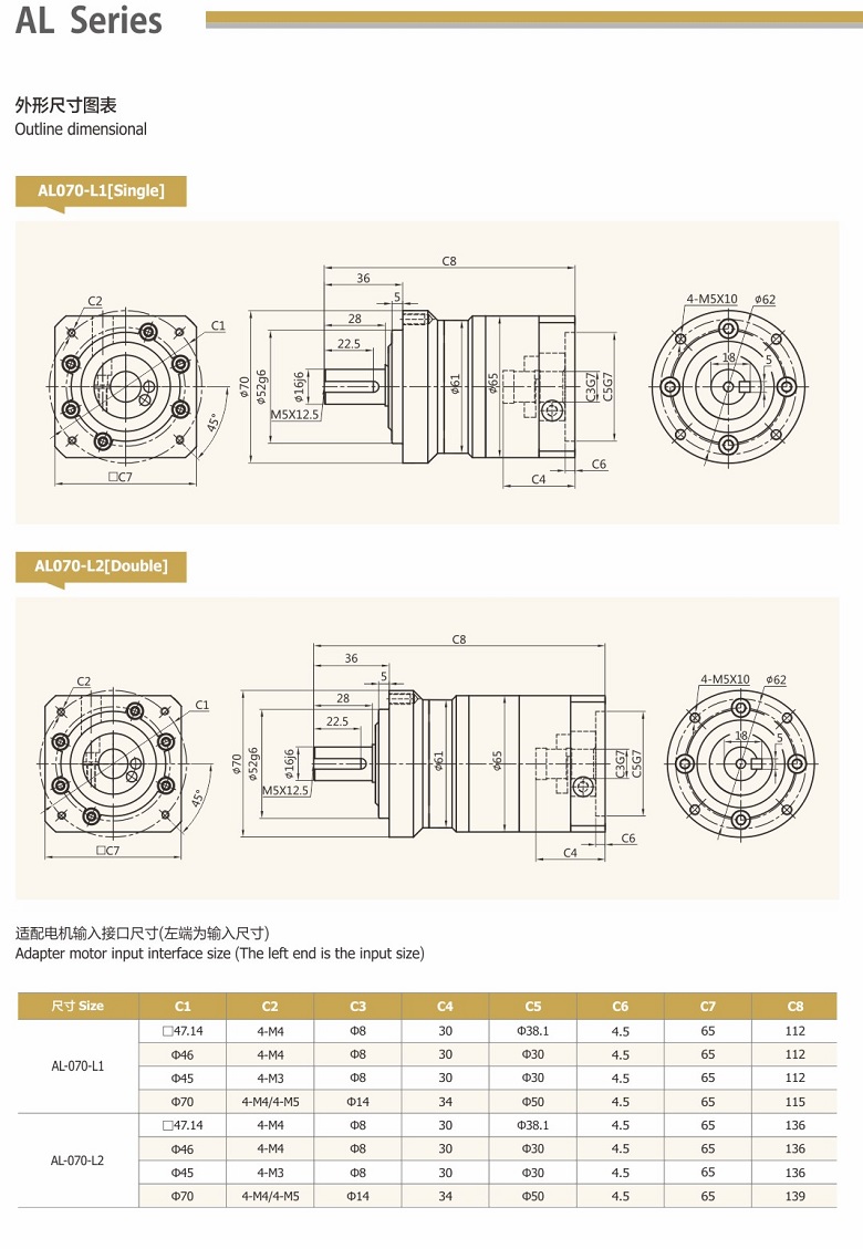 斜齒輪高精密型行星減速機AL70型號資料及尺寸圖