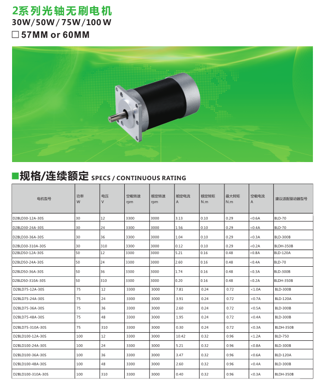 2系列光軸無刷電機(jī)直流30W-100W
