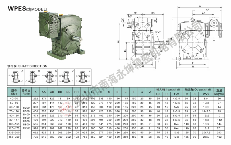 WPES蝸輪蝸桿減速機,型號有40\50\60\70\80\100\120\135\147\155\175\200\250